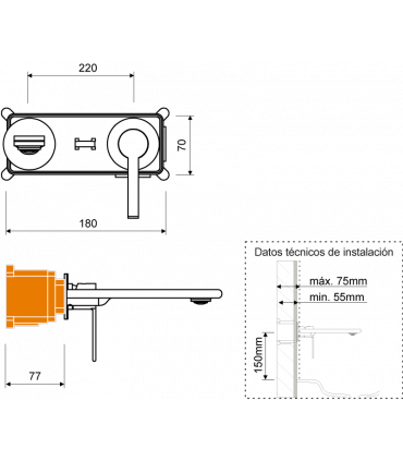 AURA MONOMANDO DE LAVABO EMPOTRADO